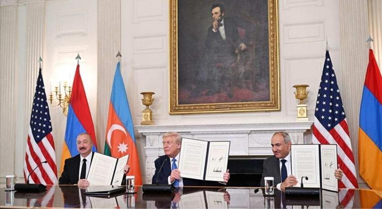 Washington’da Azerbaycan Cumhurbaşkanı İlham Aliyev ile Ermenistan Başbakanı Nikol Paşinyan, 8 Ağustos 2025’te ABD’nin arabuluculuğunda bir araya gelerek ortak deklarasyon imzaladı.